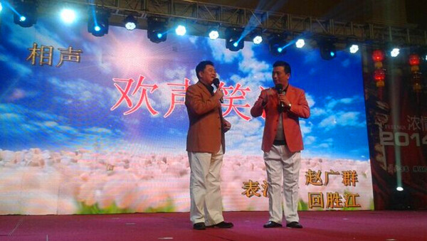 回勝江(左)與趙廣群表演相聲