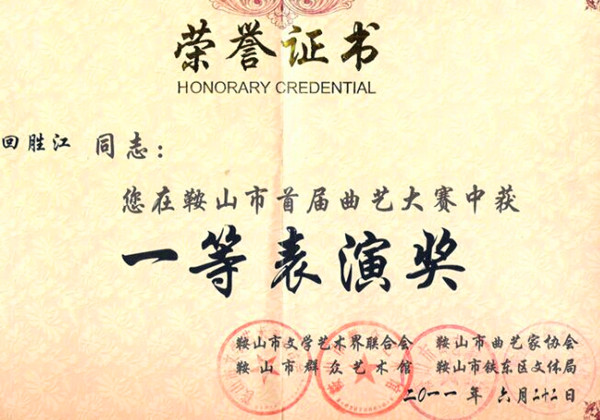鞍山市首屆曲藝大賽一等獎(jiǎng)