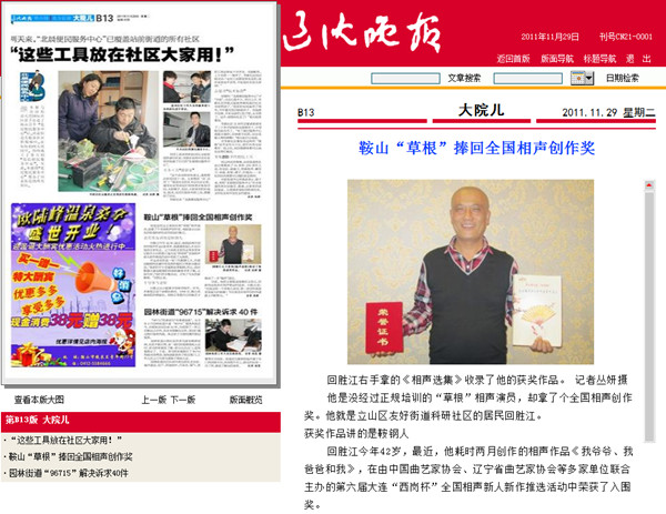 1997年11月——2001年9月受聘于鞍山市戲曲劇院工作后加入鞍山市曲藝家協(xié)會(huì)至今