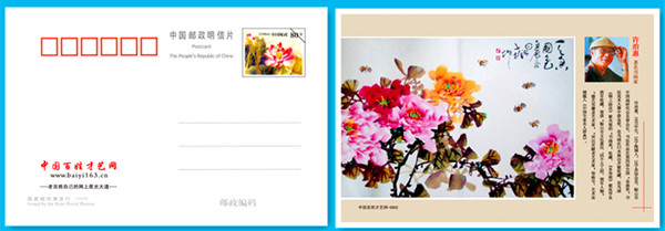 百姓才藝網(wǎng)發(fā)行中國郵政郵資明信片0002一套一枚。郵資明信片正面郵資圖案為“映日荷花”,面值:0.80元,可郵寄到全國各地,左側(cè)圖案為百姓才藝網(wǎng)www.lmtzj.cn,"老百姓自己的網(wǎng)上星光大道"。背面內(nèi)容為著名書畫家許治惠簡介及國畫作品《天香國色》。