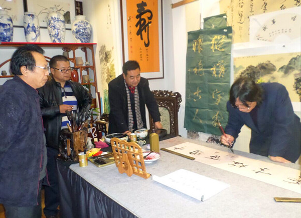 2015年10月29日在沈陽市古玩城我們有幸見到了書畫名家路力庚老師,他的老師的書房掛滿了近期創(chuàng)作的書畫作品,看后真叫人贊不絕口,不愧是大家風范,文化名人。路力庚的書法,啟功先生評論:“古拙渾厚,賞之生妙。”著名評論家楊仁愷先生題詞:“翰墨神功。”全國文聯(lián)副主席劉蘭芳題詞:“龍馬精神。”著名書法家李仲元題詞:“古淡寒梅韻,蒼渾野鶴姿。”著名作家薩仁圖婭曾這樣論路力庚:“精于傳統(tǒng)筆墨,心尚高遠藝術境界,路力庚為書為詩,剛健而中和,不求工而自登峰。從書法而論,已成為他傳導生命韻律的一種方式與形式。他師從書法大家王庭風先生,甚得其道。路力庚先生的書法作品揮灑自如,結構古樸姿絕,糅二王與篆隸之法度,風神出新,通篇古韻,動靜咸宜。而雅正章法參差多變,其布白疏密錯落有致,點化穿插巧妙……尤其是力庚先生近年深道左筆,獨辟蹊徑,藝趣天成。真性情涵萬里天,路力庚把筆抒三氣,即正氣,豪氣,逸氣。其性單純而其情豐富,其質堅韌而其思博大。”