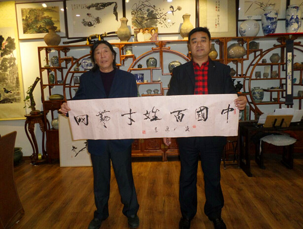 書畫名家路力庚與百姓才藝網總編輯、創(chuàng)始人邵華合影